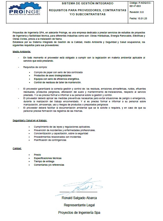 Somos una empresa con más de una década de experiencia en una amplia gama de servicios para la industria, consolidándose en sectores industriales tales como: Obras hidráulicas, Energía renovable, Obras civiles, Sistemas de tratamiento de aguas residuales, obras eléctricas en media y baja tensión, Sistema de telecomunicaciones y corrientes débiles. Esto se cumple por la existencia de una casa central que actúa bajo las normas nacionales e internacionales, dando así respaldo constante a todos sus proyectos.